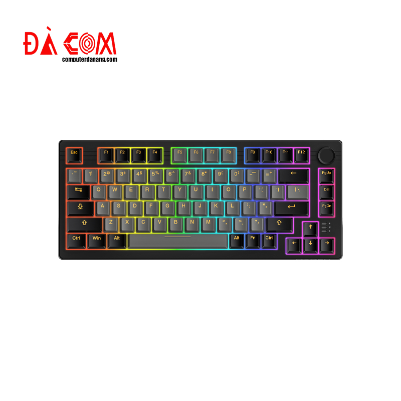- Thiết kế compact 75%: Bàn phím với layout 75% gọn gàng, tiết kiệm không gian nhưng vẫn đảm bảo đầy đủ các phím chức năng quan trọng, phù hợp cho cả làm việc và chơi game trong môi trường hạn chế diện tích.