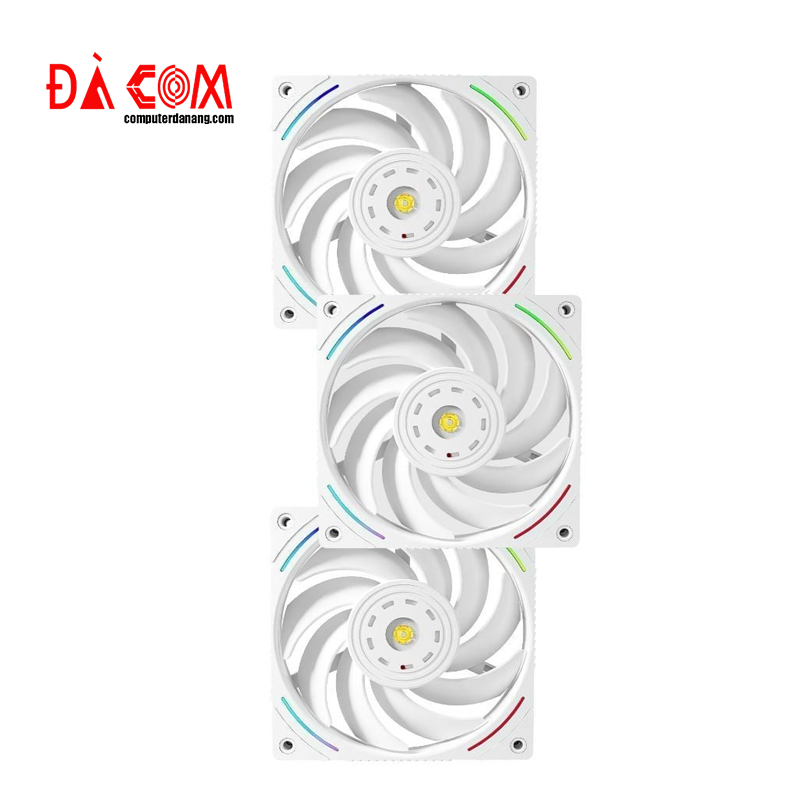 Bộ ba quạt 120mm ARGB đi kèm không chỉ có khả năng tạo luồng gió mạnh mẽ mà còn tích hợp hệ thống đèn LED ARGB đồng bộ với bo mạch chủ. Người dùng có thể dễ dàng tùy chỉnh hiệu ứng ánh sáng thông qua các phần mềm điều khiển RGB, từ đó biến dàn PC trở nên nổi bật và cá nhân hóa theo phong cách riêng.